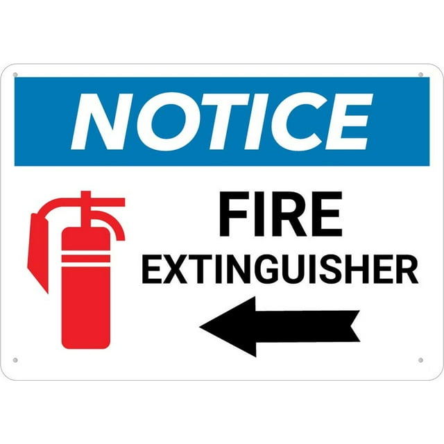Notice Fire Extinguisher With Left Arrow Sign 8X12 Inch Rust Free ...