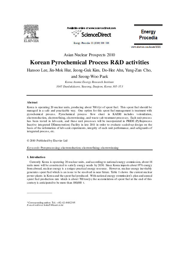 (PDF) Korean Pyrochemical Process R&D activities
