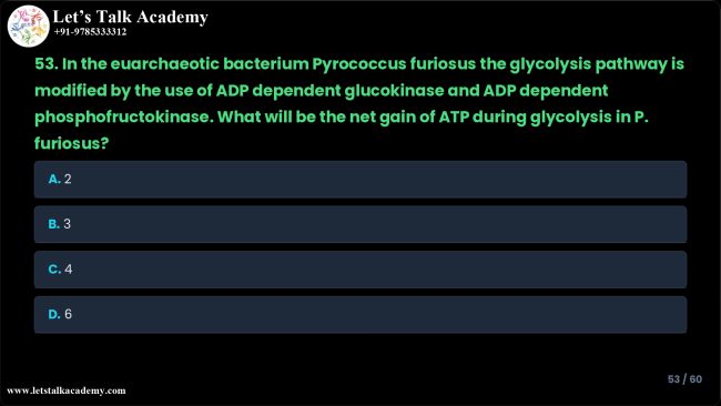Net ATP Gain in Pyrococcus furiosus Glycolysis - CSIR NET LIFE SCIENCE ...