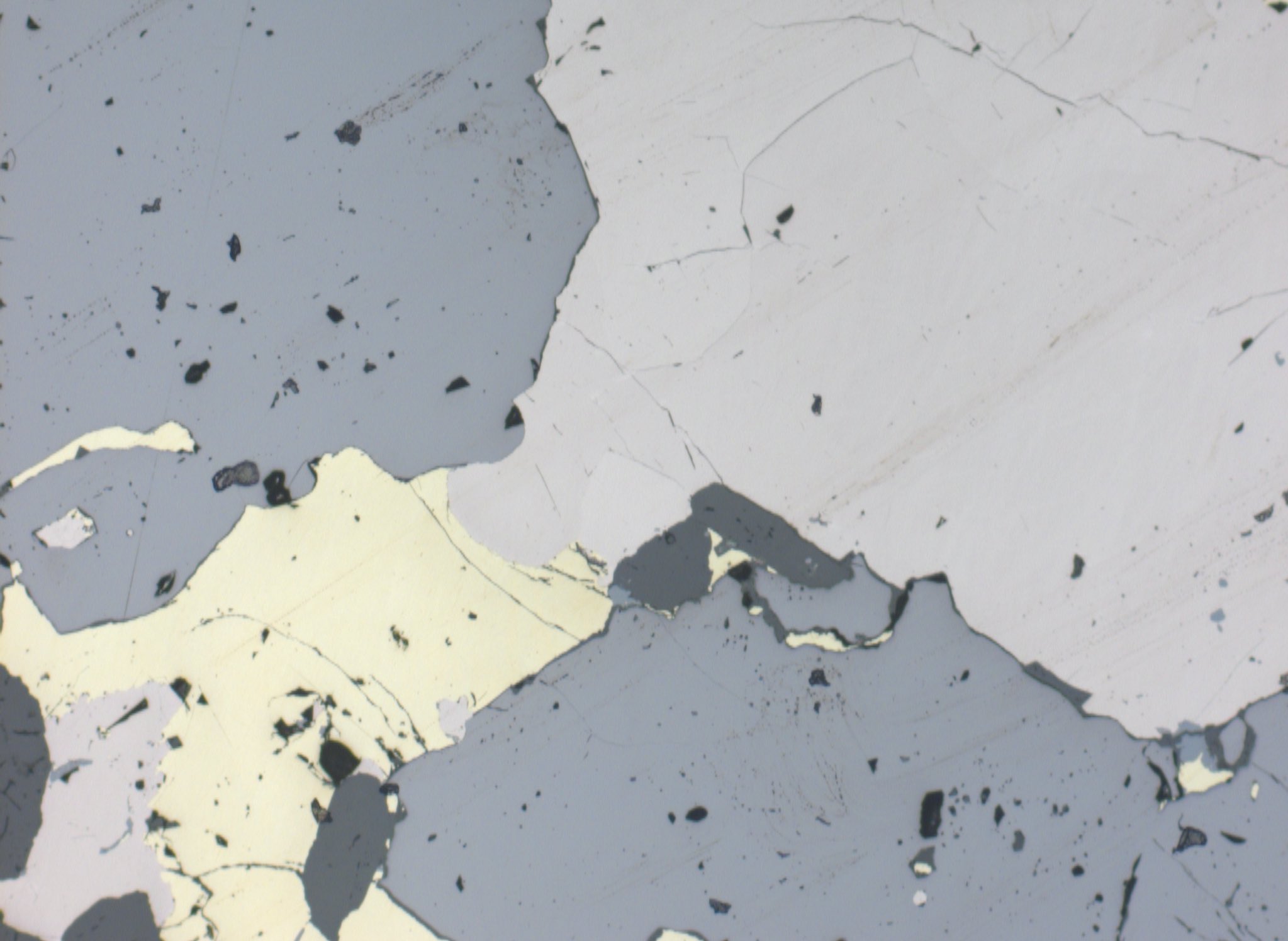 Reflected light photomicrograph of pyrrhotite-rich mineralization in ...