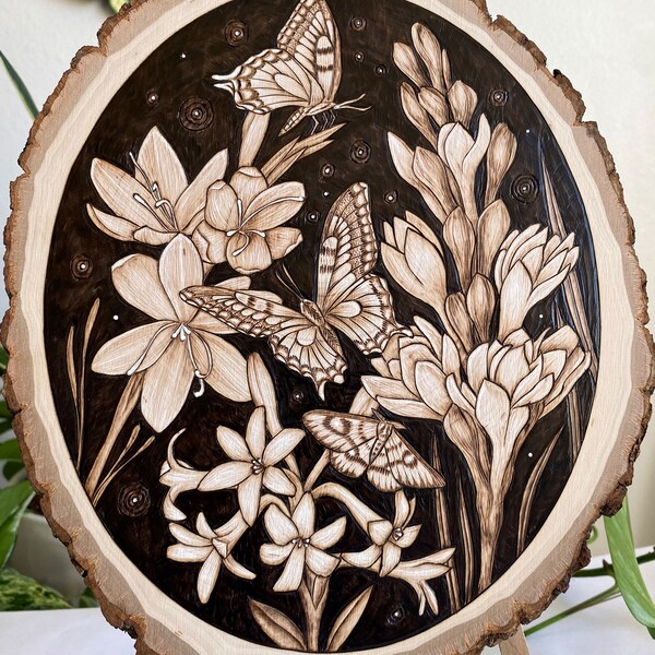 Pyrography Art, Wood Burnt Art, Flowers and Butterflies, Butterfly ...