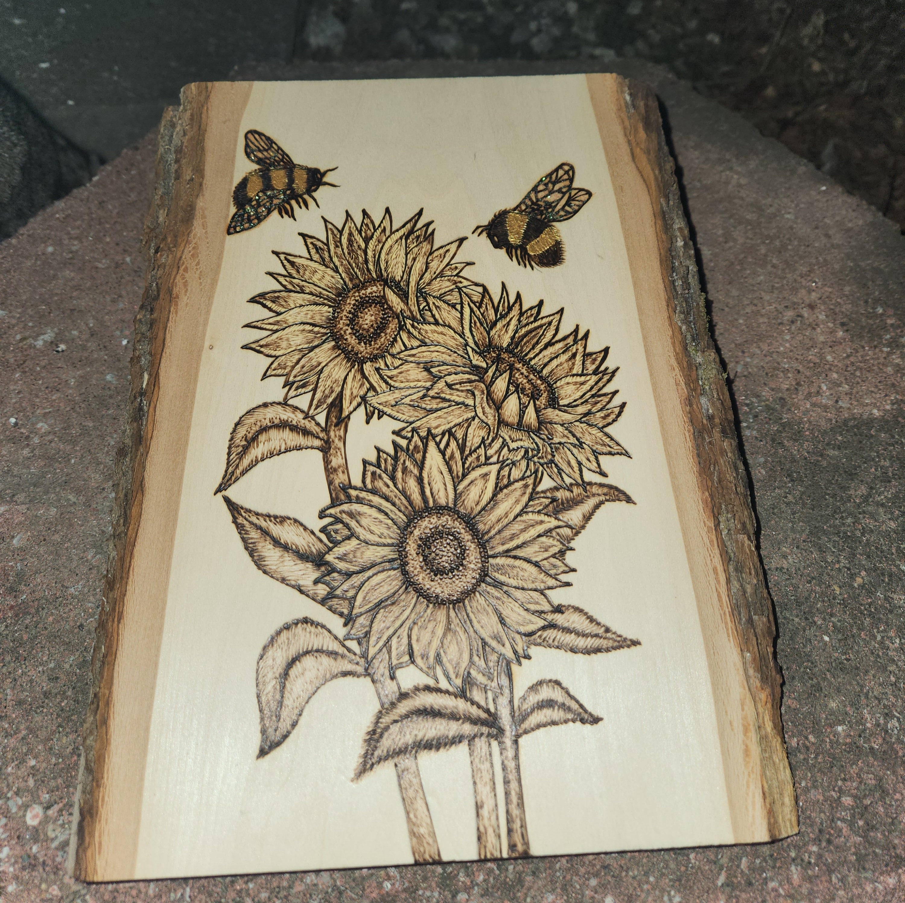 Sunflowers and Bees Pyrography Art Handmade Wood Burn, Spring, Nature ...
