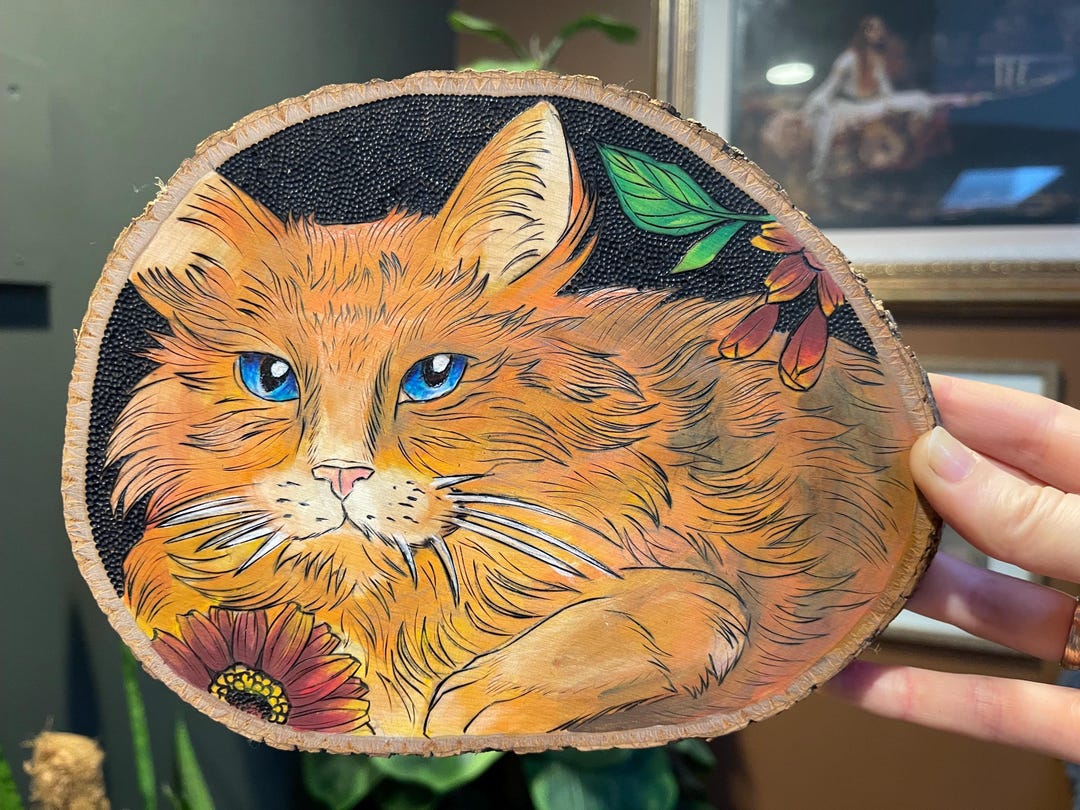 Orange Cat Wood Burning, Acrylic Painting With Pyrography Art on a Wood ...