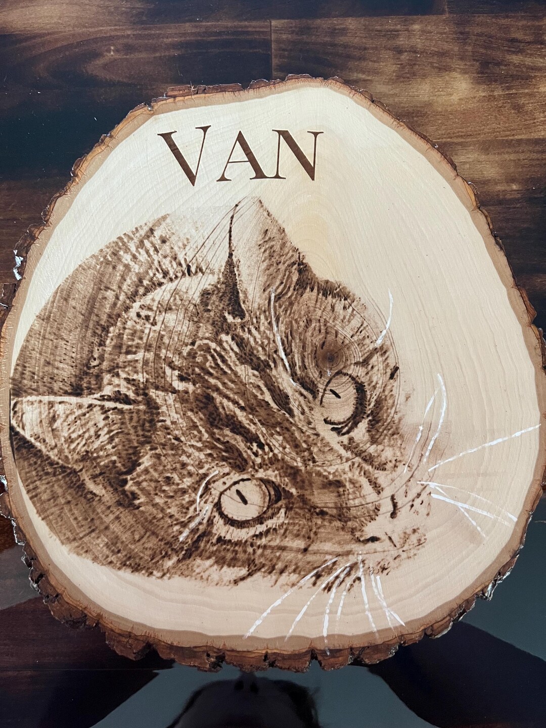Wood Burning Pet Portrait: Personalized Cat Memorial, Custom Pyrography ...