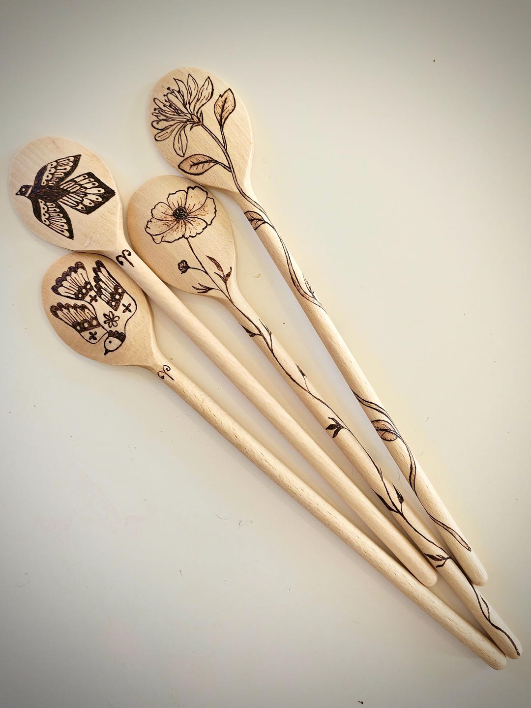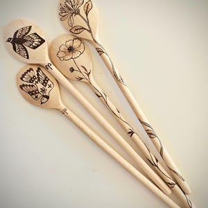 Hand Burned Wooden Spoons: Floral Pyrography, Food Safe - Etsy
