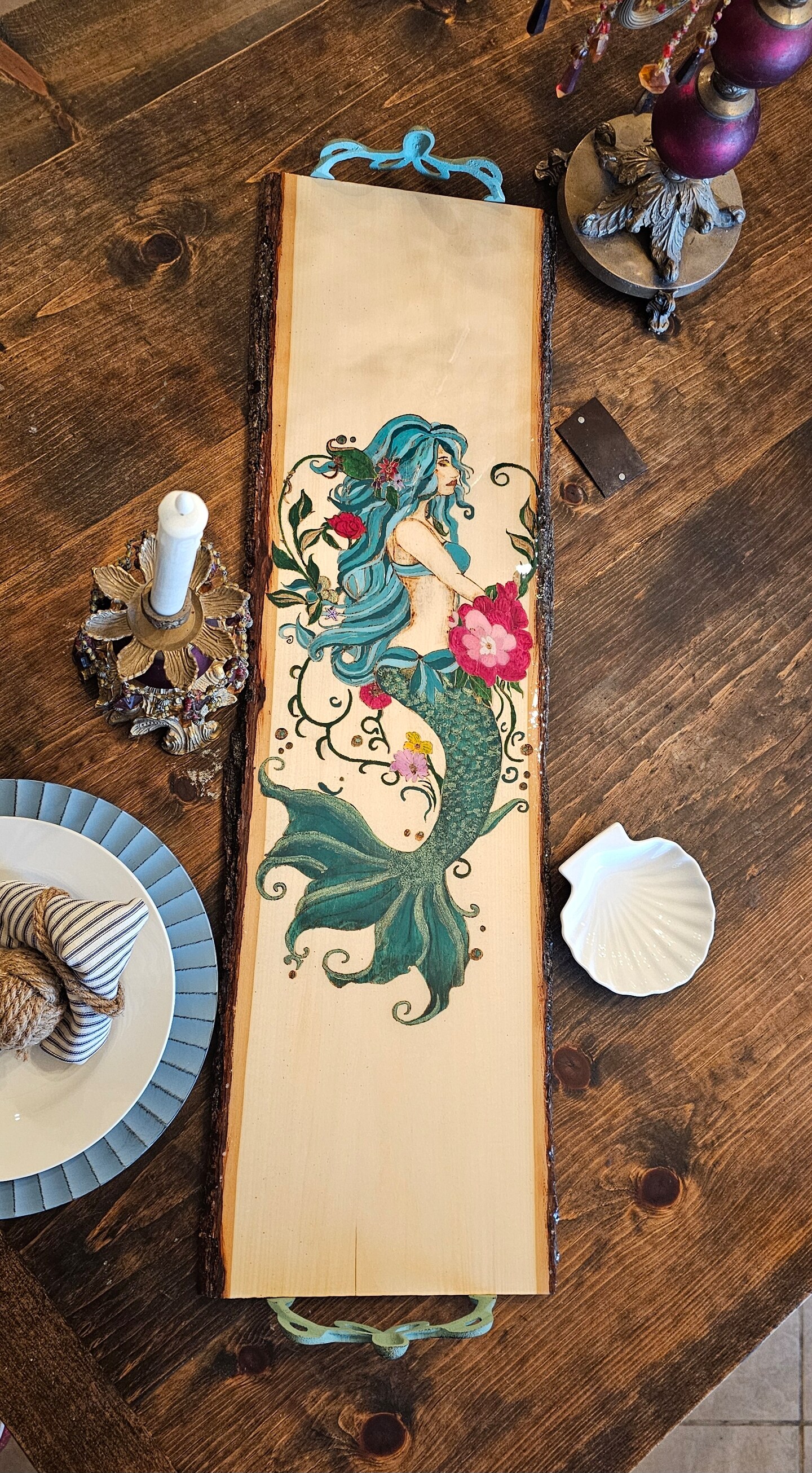 Sea glass mermaid 🧜♀️ tray, pyrography, unicorn spit, home decor ...