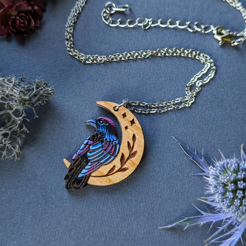 Wooden Pendant Raven Crow - Etsy