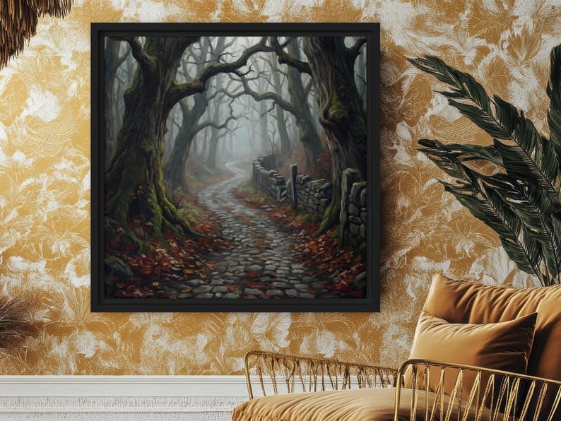 Dark Gothic Forest Path Framed Canvas Print, Moody Academia Artwork ...