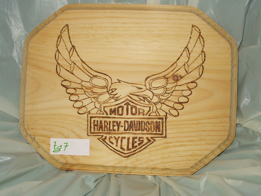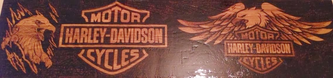 Harley logo burnt by hand & fully completed & with its new owner. Bur ...