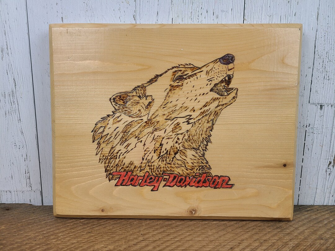 Vintage Harley-davidson Wolf Pyrography Image Wood Burning Artwork ...
