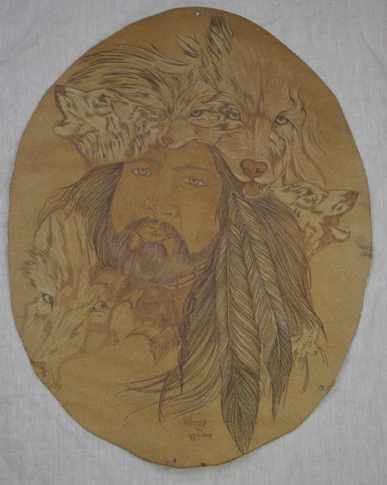 Vintage tooled leather "Native American & Wolves" Pyrography Painting ...