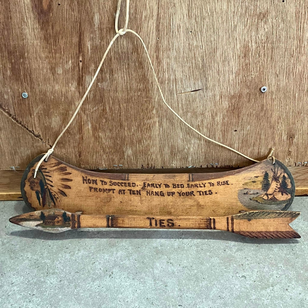 Vintage Pyrography Tie Rack: Native Indian Canoe Wooden Wall Decor - Etsy