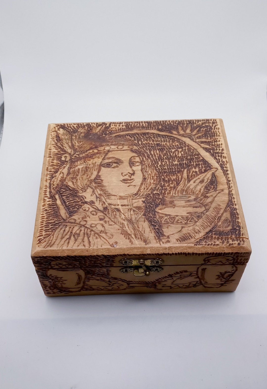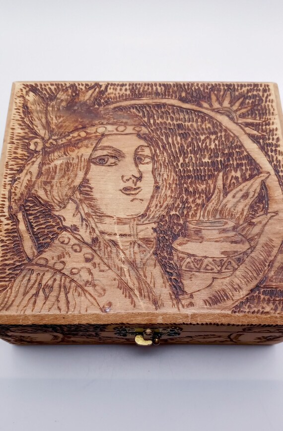 Pyrography Native American Image, Jewelry/trinket Box, Flemish Art, New ...