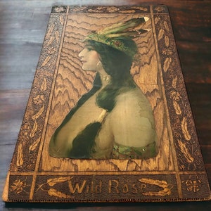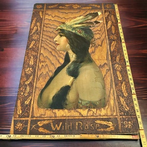 Wild Rose Pyrography Native American Woman Art, Antique Native ...