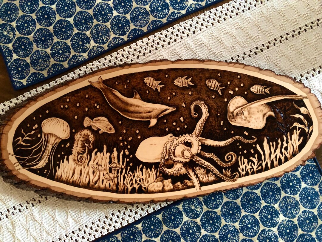 Handmade Pyrography Seascape: Wood Burned Ocean Life Wall Art - Etsy