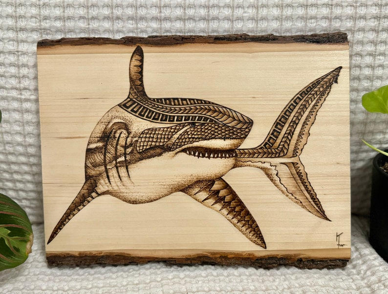 Handcrafted Pyrography Great White Shark Art - Etsy