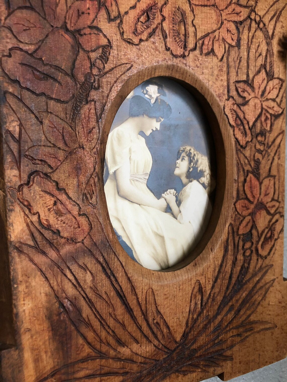 Art Nouveau Pyrography Photo Frame / Victorian Women / Vintage | Etsy