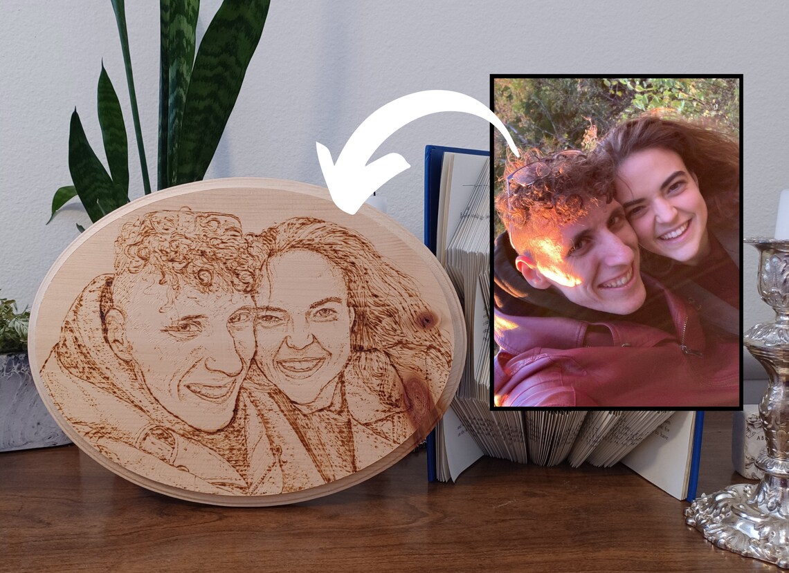Custom Portrait Pyrography Wood Burned Photo; Wedding, Anniversary ...