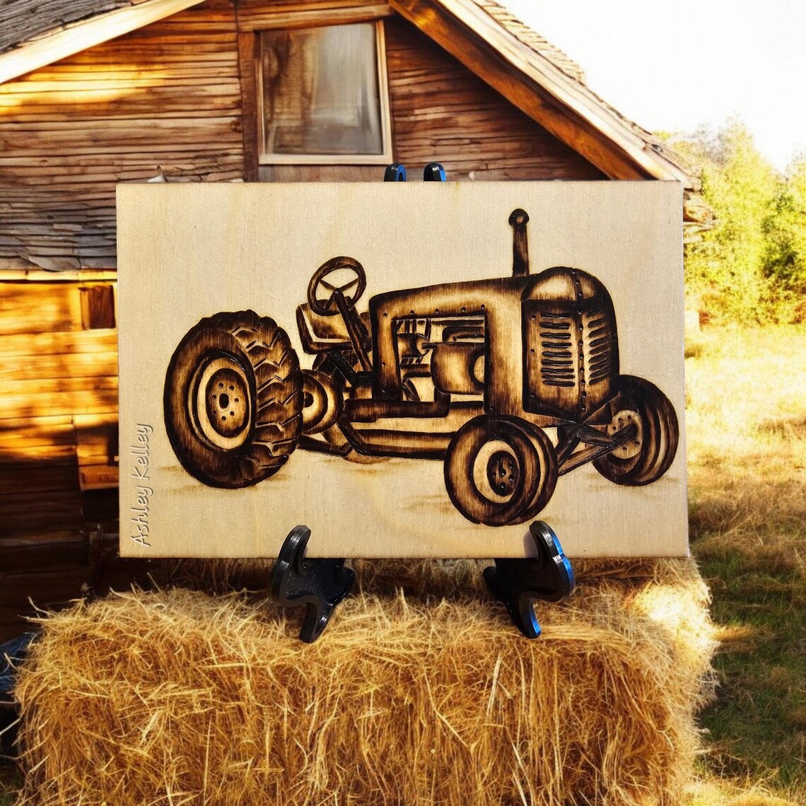 Handmade Wood-burned/pyrography Vintage Tractor Art - Etsy