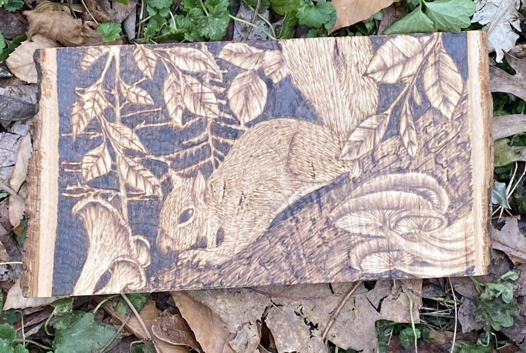 World Pyrography Month | "Squirrel on Log" | Facebook