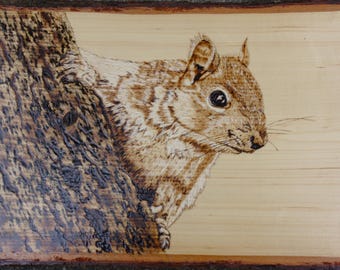 Handmade Wood Burning Art: Rustic Squirrel Pyrography on Basswood - Etsy
