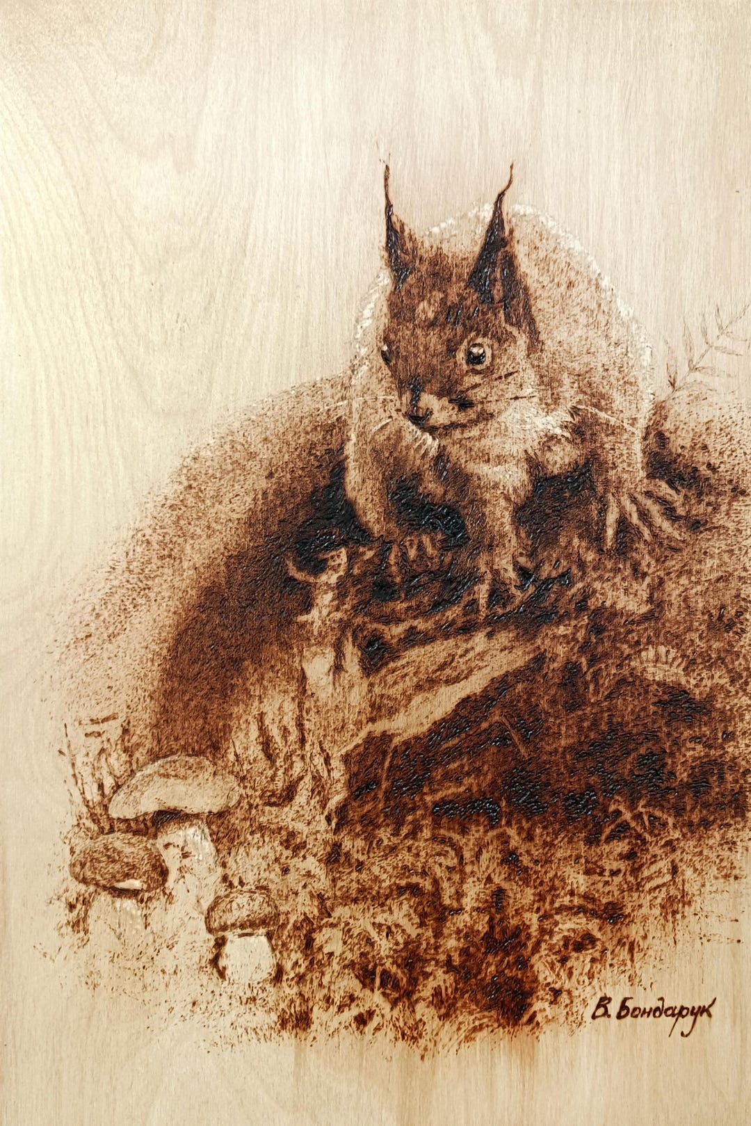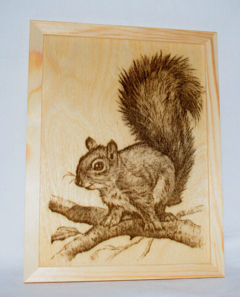 Squirrel Pyrography Picture. Wood Burned Picture of a Squirrel in a ...
