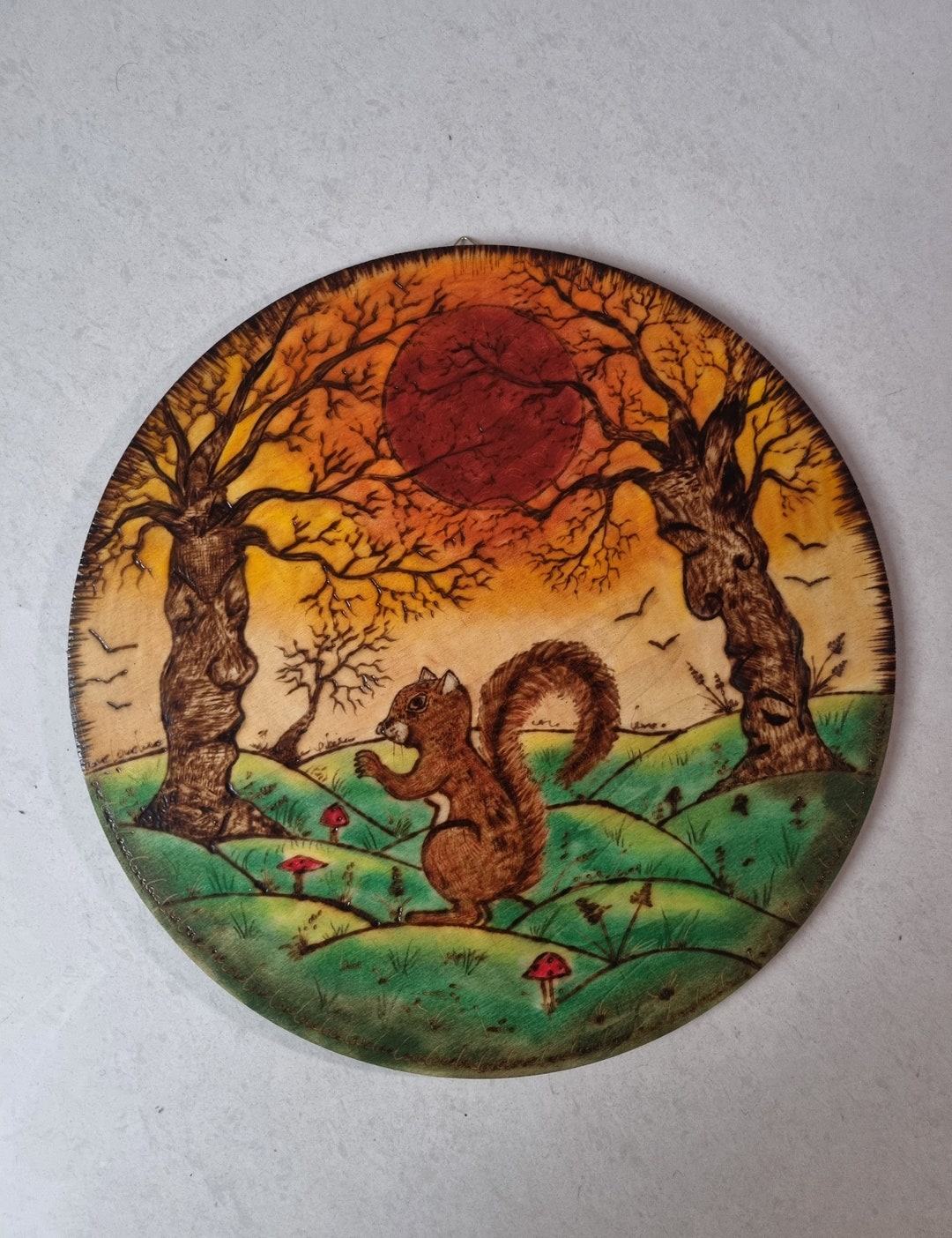 Pyrography Squirrel Wood Slice Art: Hand-painted Sunset Scene - Etsy