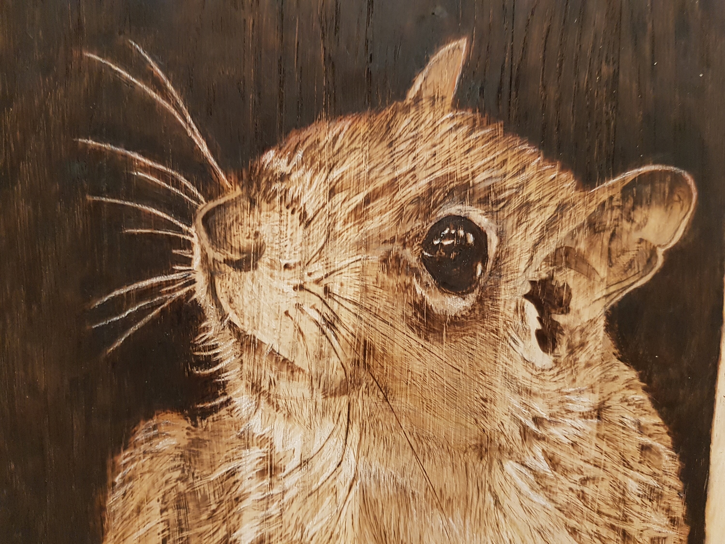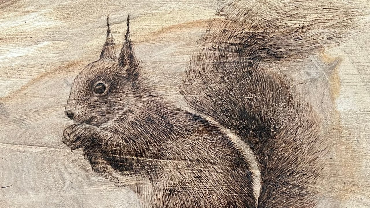 Pyrography of a red squirrel. He needed quite a bit of colour high ...