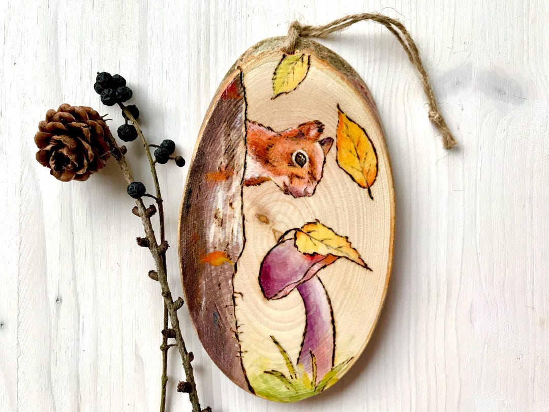 Pyrography Squirrel Hand Painted Wooden Decoration Mirror Pendant - Etsy