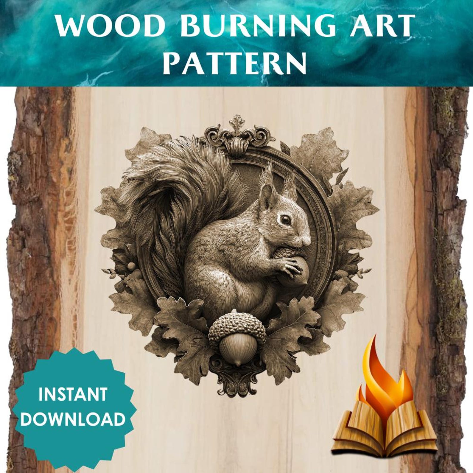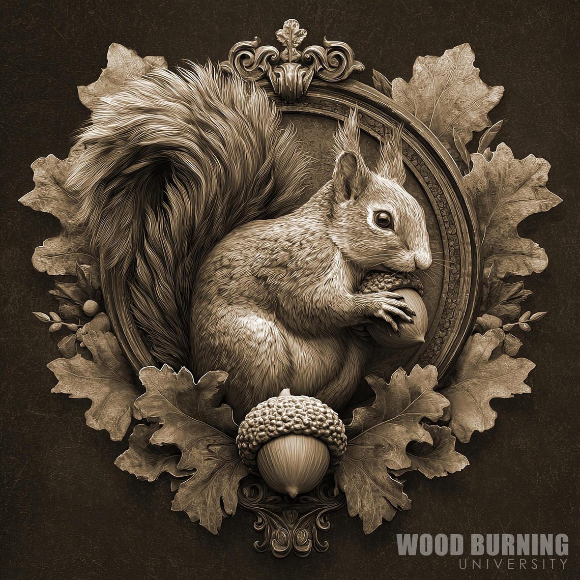 Squirrel Pyrography Pattern – Acorn & Oak Leaves Wood Burning Design ...