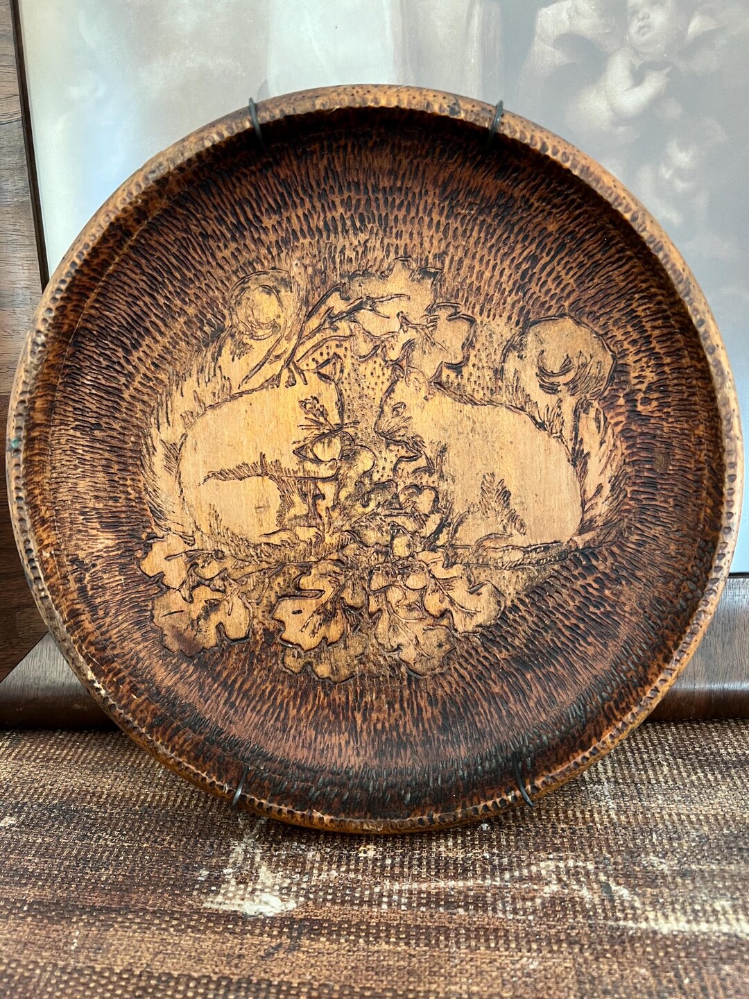 Vintage Squirrel Pyrography Plaque Nut Bowl Flemish Art Burned Wood ...
