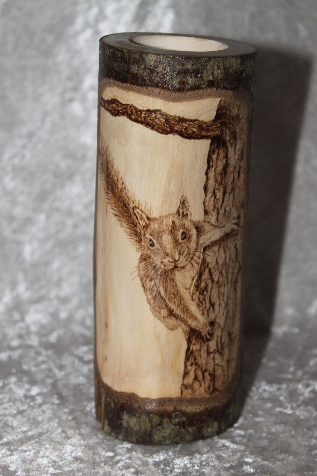 Squirrel Tealight Candleholder. Squirrel in a Tree. Pyrography Art ...