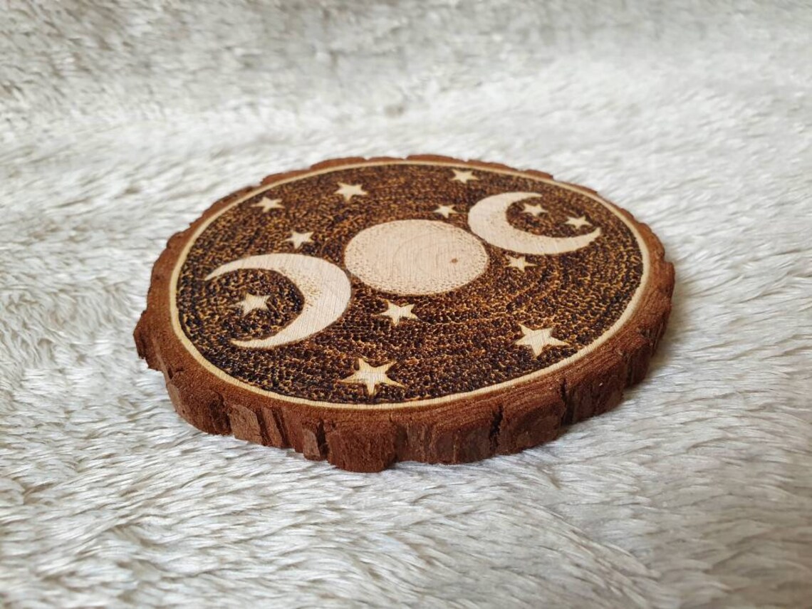 Set of 4 Pyrography Celtic Crescent Moon and Sun and Star Coasters