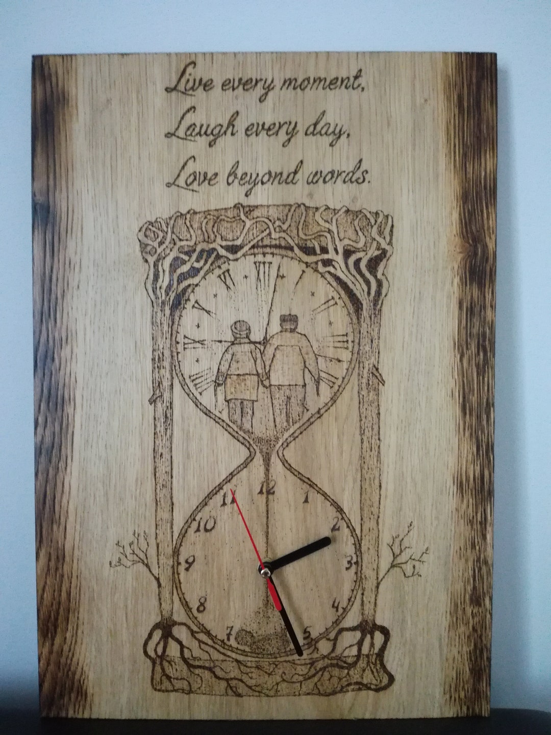 Wood Burned Hourglass Pyrography Wall Clock - Etsy