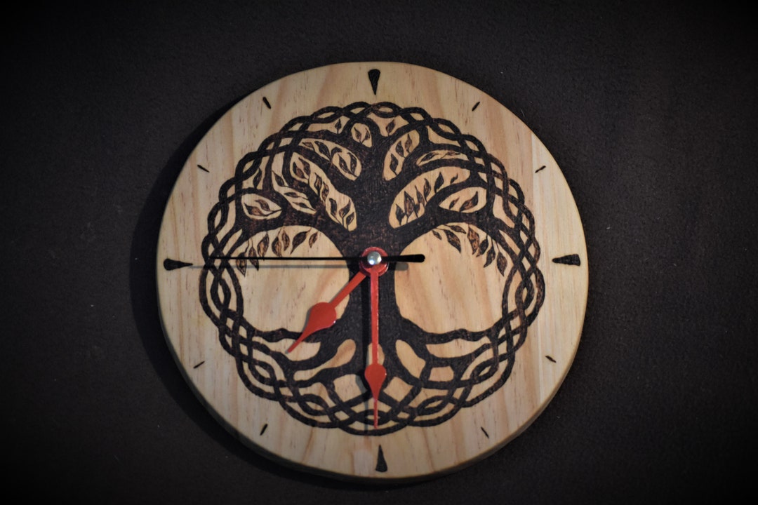 Wooden Clock With Yggdrasil / Tree of Life Pyrography - Etsy
