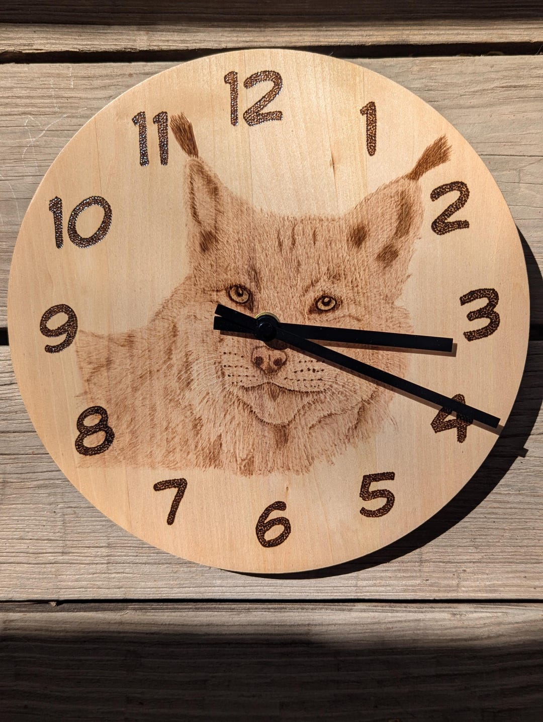 Hand Burned Pyrography Lynx Clock - Etsy