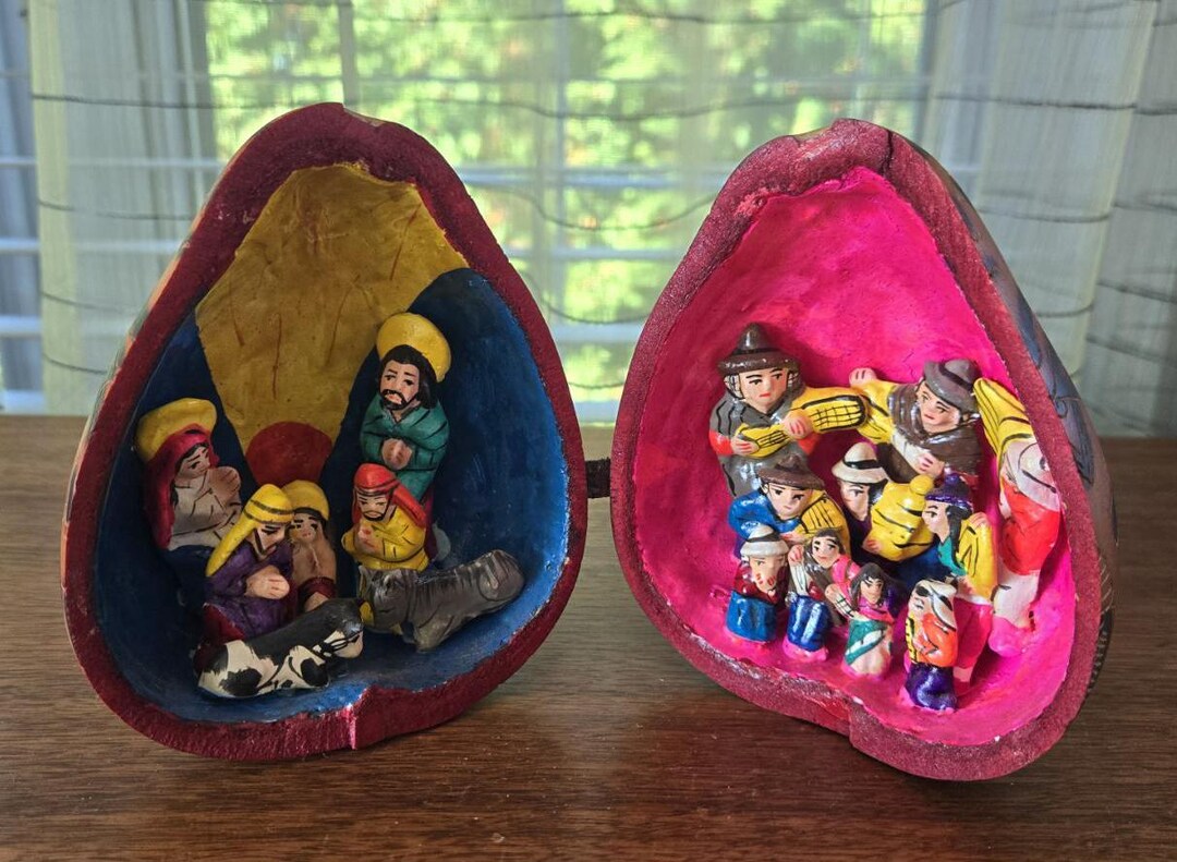 Peruvian Folk Art Gourd Christmas Ornament Nativity Scene Pyrography ...