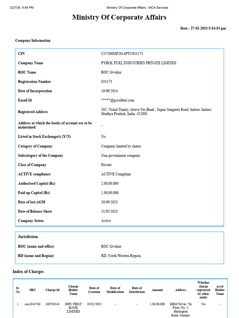 Pyrol Fuel Industries Company Profile | PDF | Corporations | Financial ...