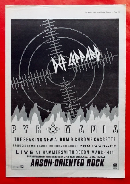 DEF LEPPARD PYROMANIA Lp + Tour Dates Poster Advert Nme Magazine 1983 £ ...