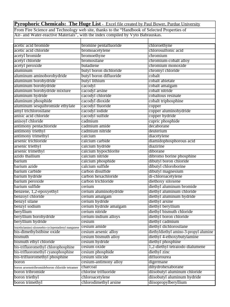 Pyrophoric Chemical List | PDF | Zirconium | Aluminium