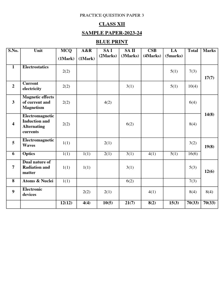 XII Physics - Sample Question Paper (SQP) for Final Exam - Studocu