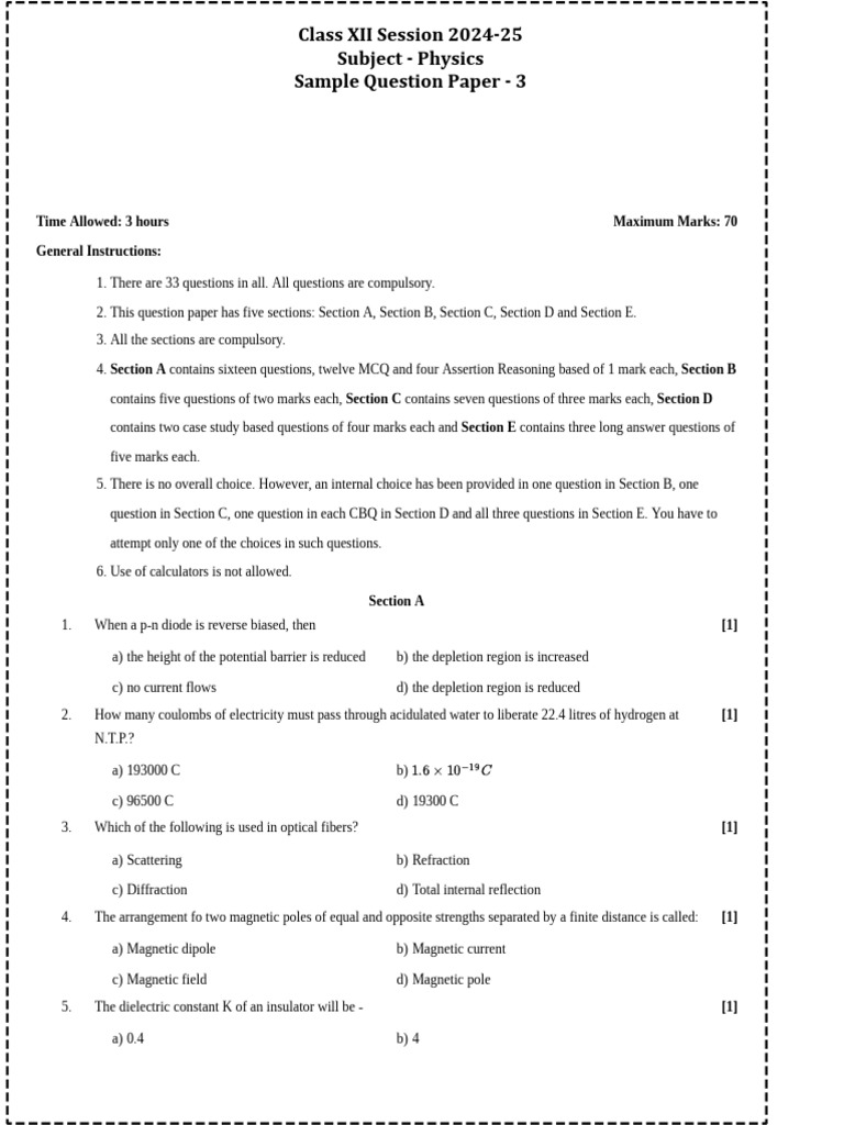 2025 12 Physics Sample Question Paper - CBSE Class XII - Studocu