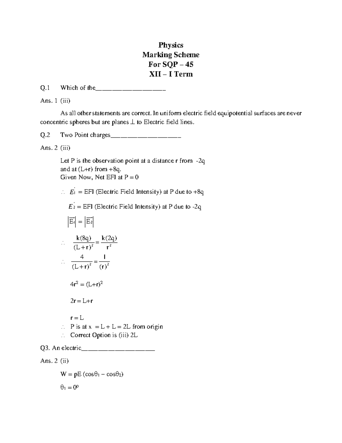 Physics XII I Term Sample Question Paper Solutions (SQP 45) - Studocu