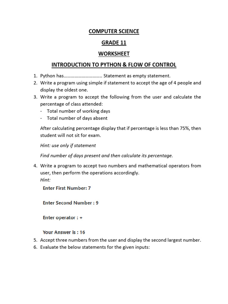 Worksheet Grade 11 Python If | PDF