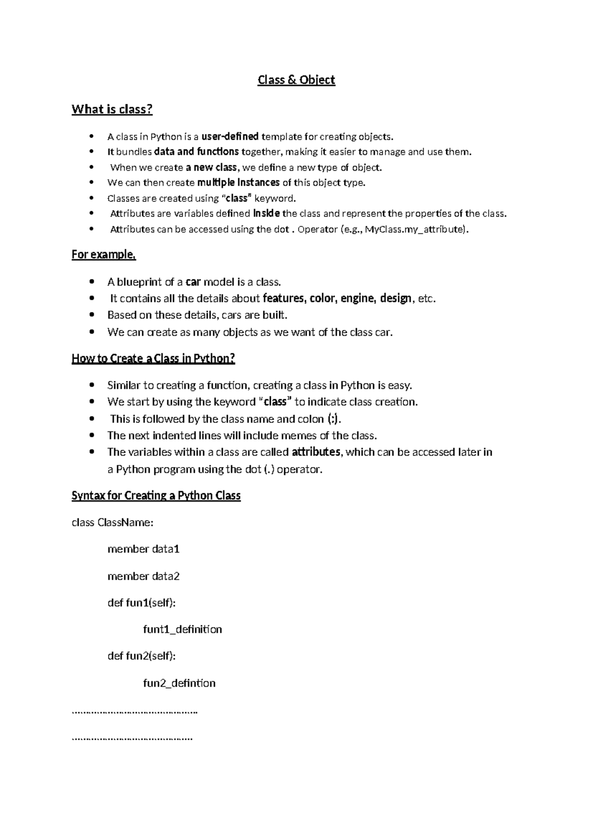 Python Class Basics: Understanding Objects and Attributes - Studocu