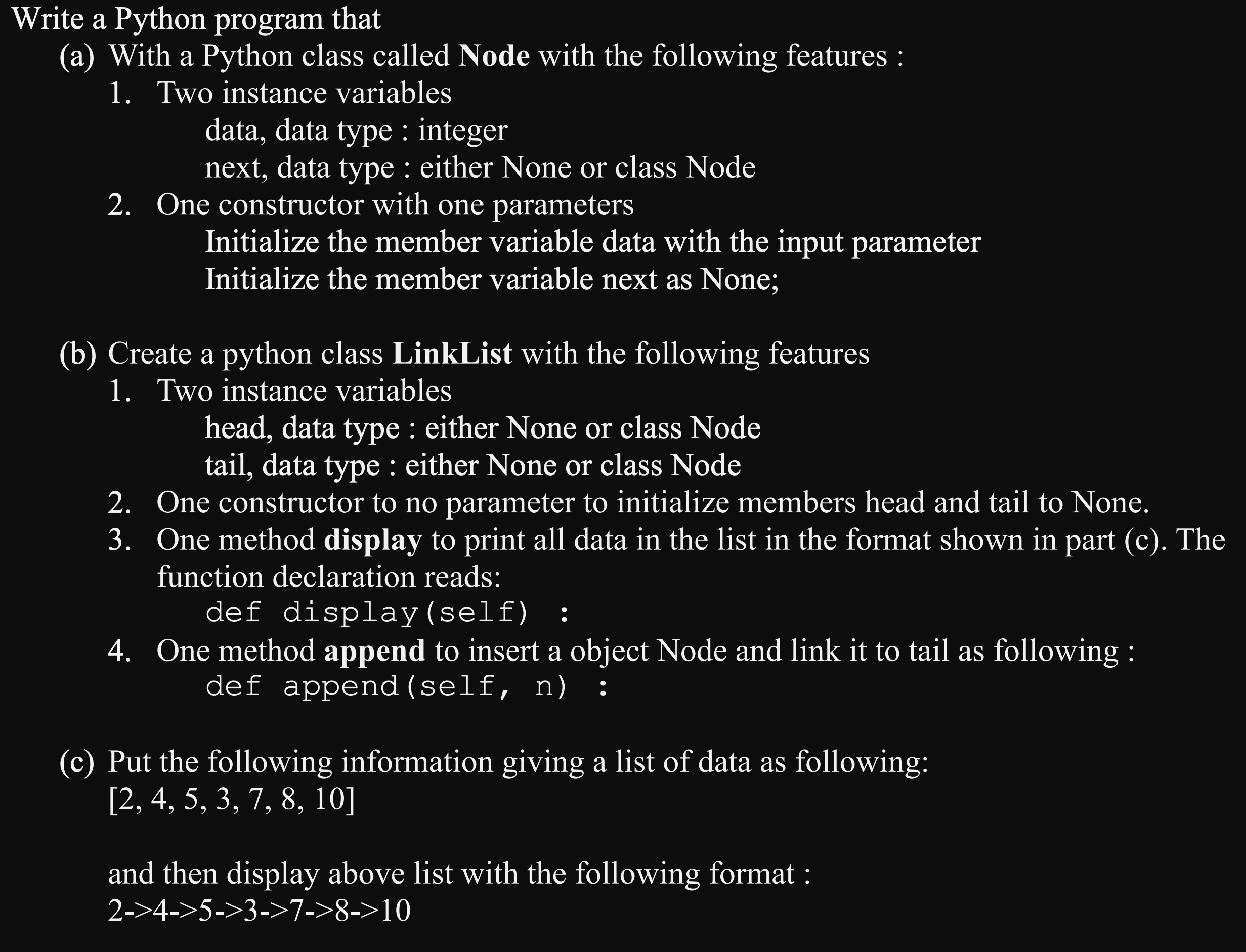Solved PYTHON Node and LinkedList ADT shown below: class | Chegg.com