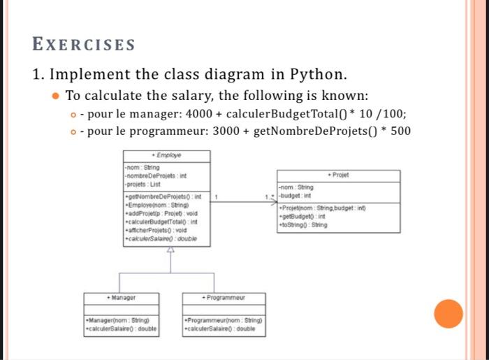 Solved EXERCISES 1. Implement the class diagram in Python. • | Chegg.com