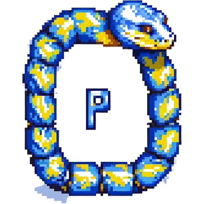pixel art logo inspired by the Python programming language, featuring a ...