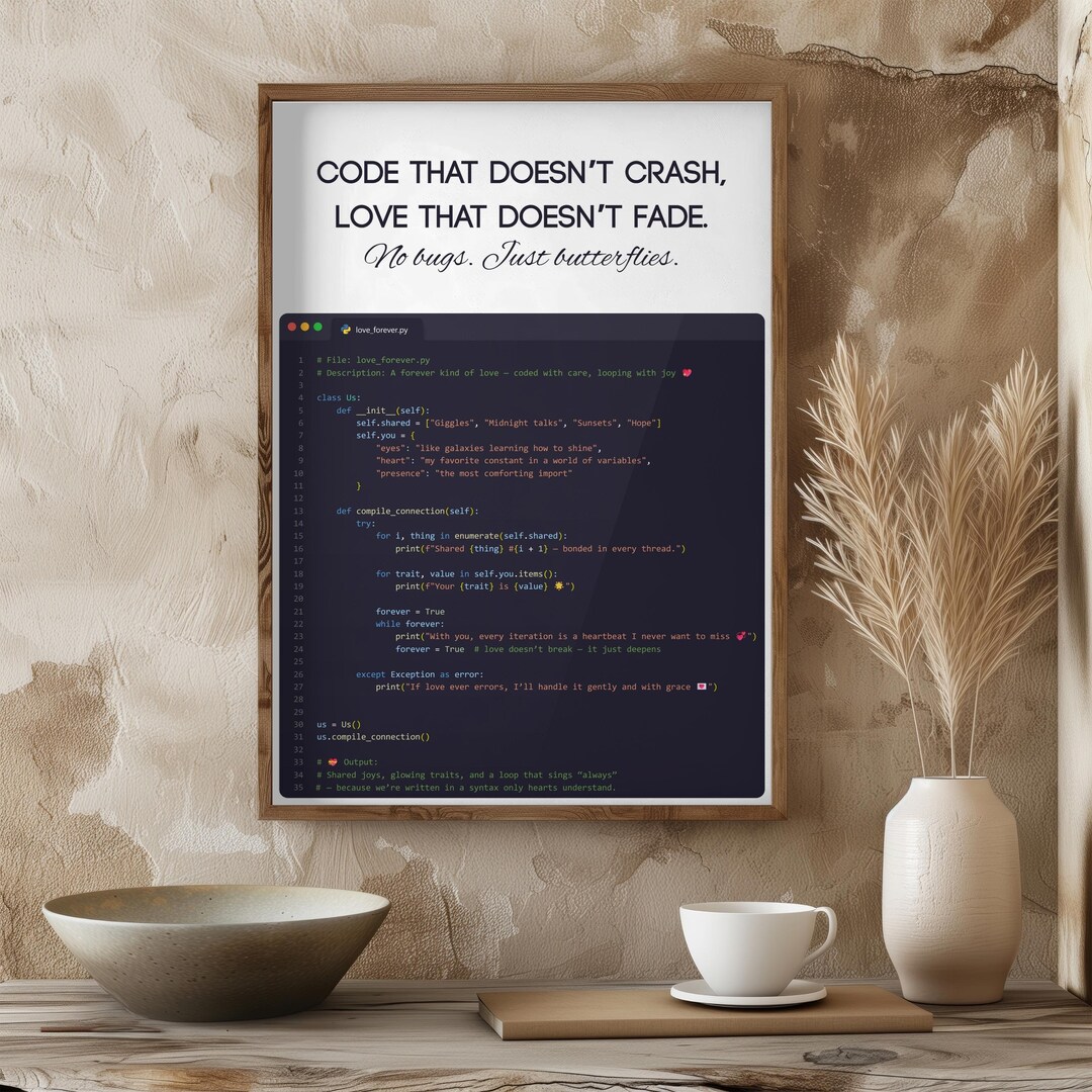 Romantic Python Code Wall Art – Software Engineer Gift – Programmer ...