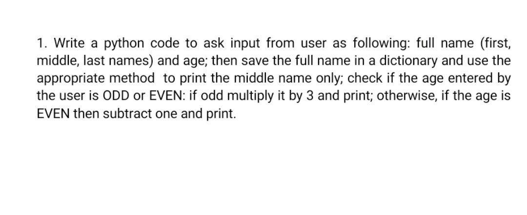 Solved 1. Write a python code to ask input from user as | Chegg.com